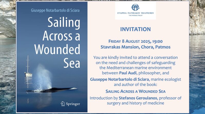 On Friday, August 8, 2025, from 7:00 p.m. to 8:30 p.m., the Stavraka House in Ηora, Patmos, will host an important spiritual gathering on the occasion of the presentation of Giuseppe Notarbartolo di Sciara’s book Sailing Across a Wounded Sea.