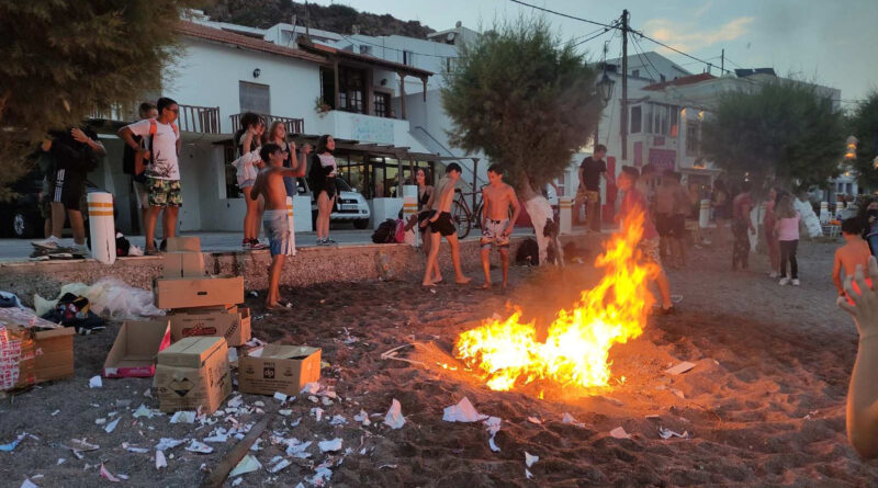 ΠερισσότεραΈνα από τα έθιμα που τηρούνται εδώ στη νησί και εορτάζονται την παραμονή της Ανάληψης είναι αυτό που προστάζει την καύση από τις δάφνες και τα μύρα που κρατήθηκαν από τις μεγαλοβδομαδιάτικες ακολουθίες.
