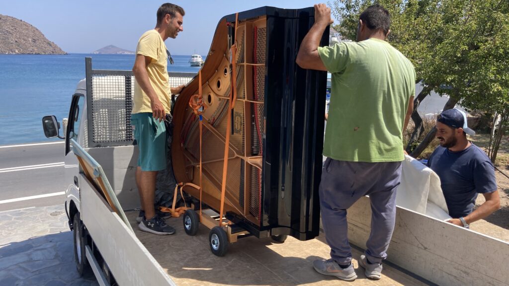 More than seventy musicians will be on the island this year, bringing with them instruments and experiences from different musical traditions. The unique challenge of transporting a large Fazioli piano through the narrow streets of Patmos has become part of the festival’s identity, reminding us that every concert is the result of collective effort, dedication, and love for music.