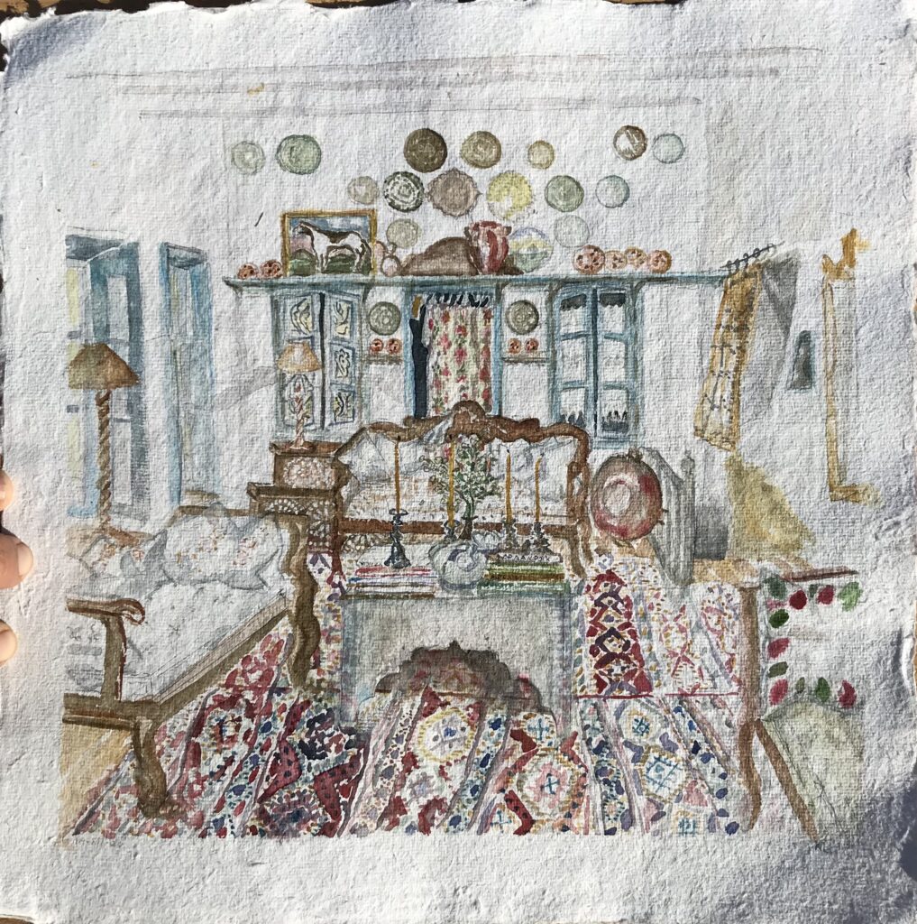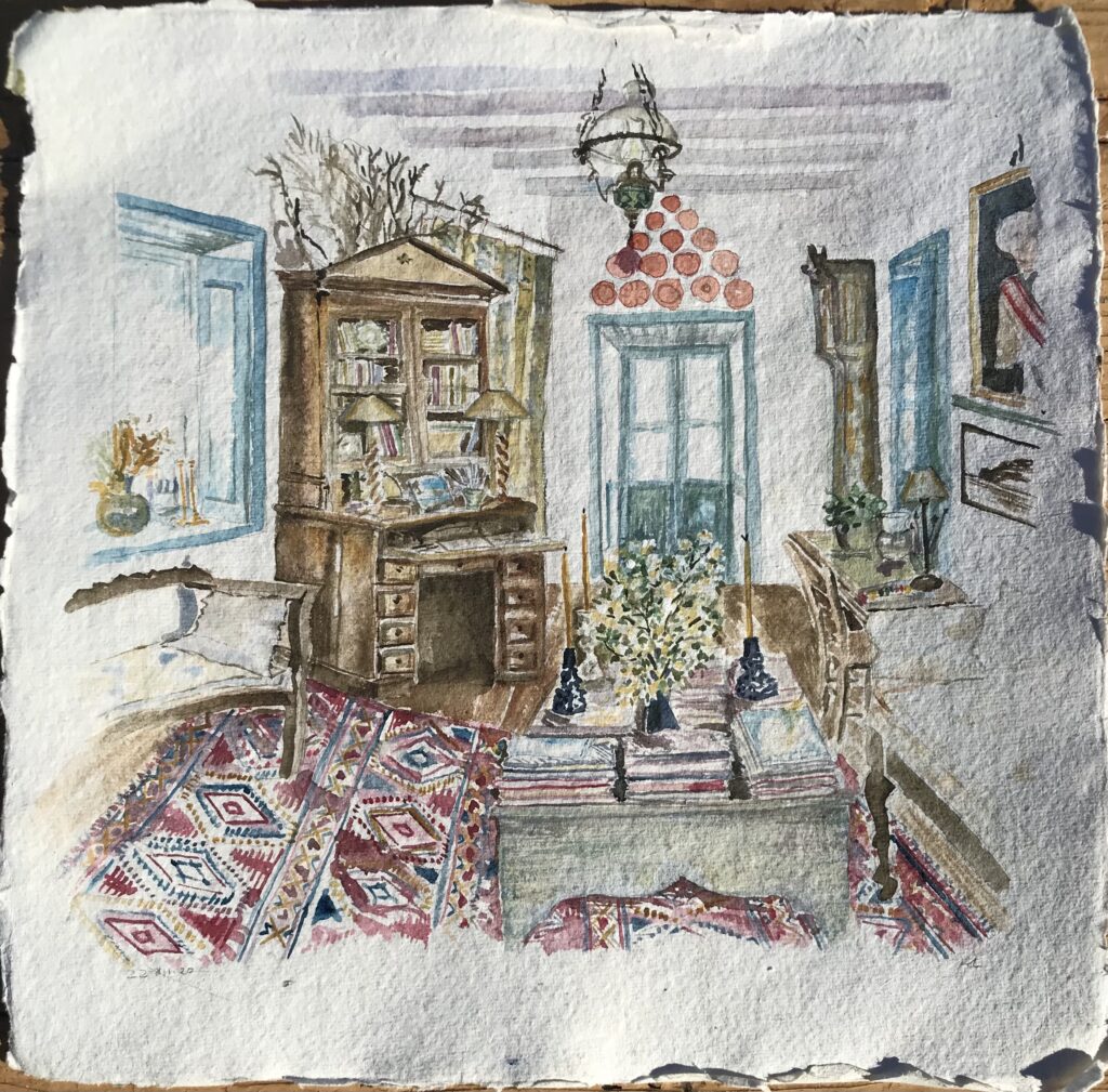 Κατά τη διάρκεια του χειμώνα του lockdown του 2020-2021, η πολυπράγμων καλλιτέχνιδα Holly Lueders εμπνεύστηκε να δημιουργήσει πίνακες από διάφορα δωμάτια στο σπίτι της στο νησί της Πάτμου.